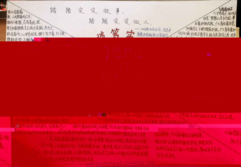 通過舉辦本次學習摘錄活動,同學們進一步深刻學習領會習近平新時代中國特色社會主義思想,将習近平總書記的諄諄教誨内化于心、外化于行,強化使命擔當,在實現民族複興的時代偉業中放飛青春夢想、書寫人生華章。